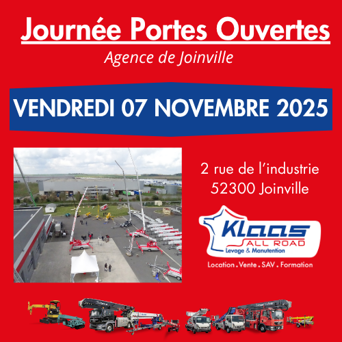 Vendredi 7 novembre 2025, KLAAS ALL ROAD vous accueille dans son agence de Joinville pour une Journée Portes Ouvertes professionnelle.