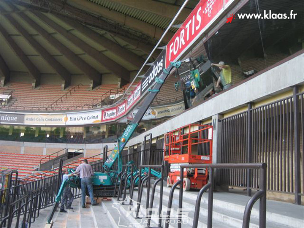 Location mini grue électrique Maeda MC 285 avec Klaas by All Road et le service de livraison sur chantier partout en France.