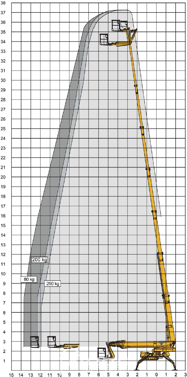 Grâce à un déport horizontal de 13,7 mètres et un jib de 2,7 mètres, cette nacelle araignée permet d’atteindre des zones difficiles d’accès avec une grande précision. Elle est équipée d’une motorisation biénergie (thermique + électrique), ce qui la rend aussi efficace en intérieur qu’en extérieur.