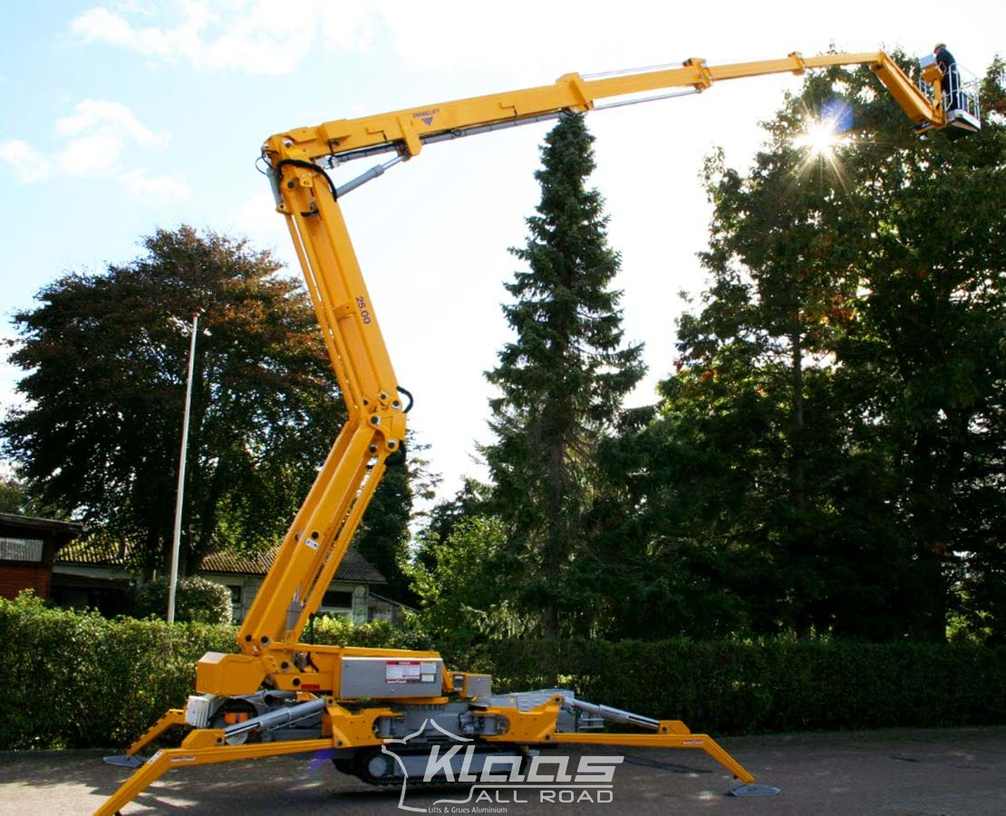 Le nacelle araignée articulée Ommelift 25.00 RXJ a une hauteur de travail maximale de 25 m et une portée maximale de 12,8 m.